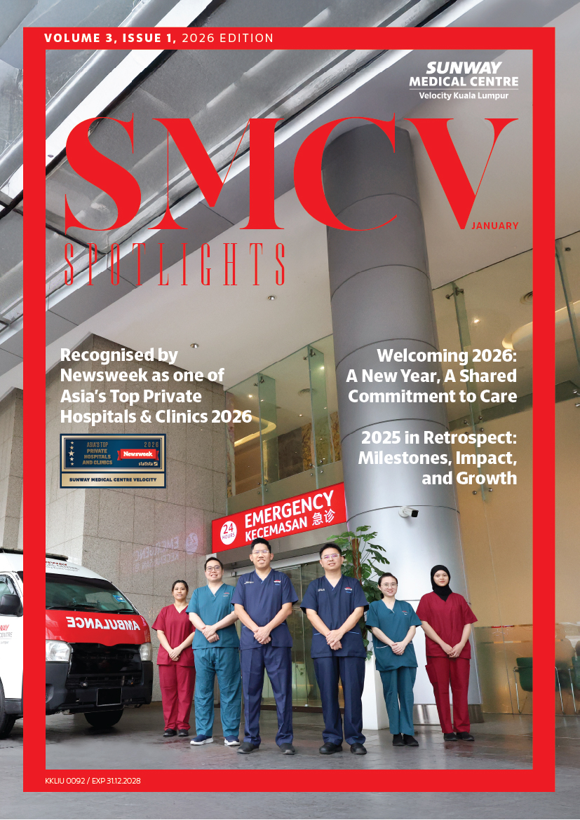 This special issue also reflects on the milestones of 2025 — celebrating SMCV’s key successes, meaningful impact, and continued growth. It also brings you updates on what’s new at Sunway Medical Centre Velocity (SMCV), alongside selected health insights to support informed and proactive health management.